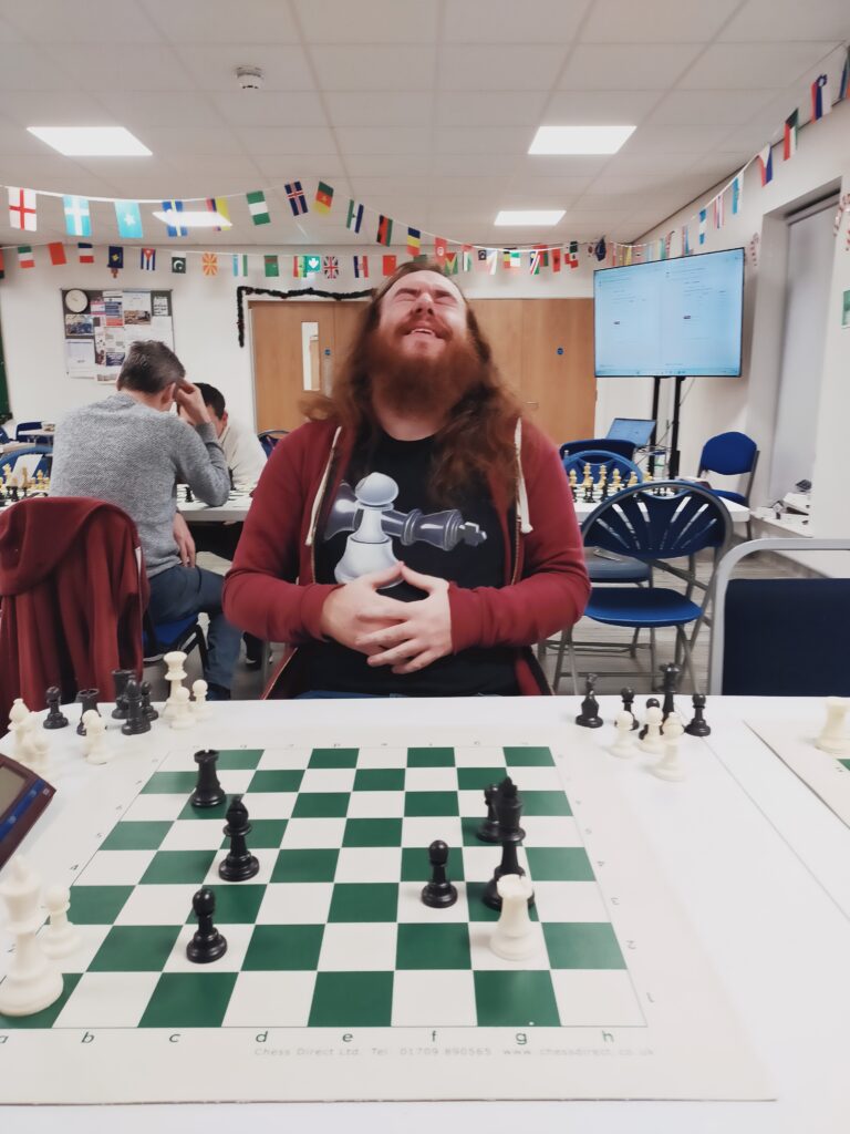 To make things worse Crewe B beat Crewe A in the match. Harry and Carmel drew in 13 moves (eh?). In contrast Lukasz and Martin F, 2 of the most adventurous players in the club, played an expectedly wild game, with Lukasz winning. Gee beat Jamie on board 2.