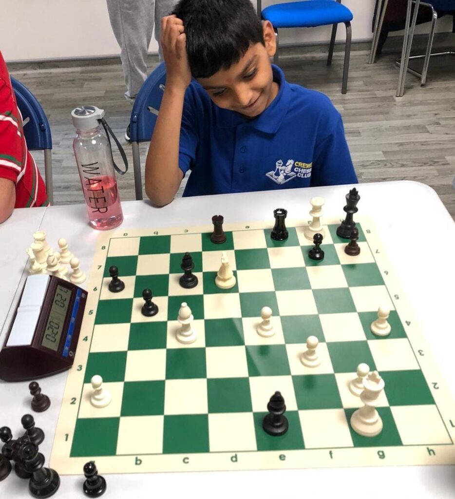 13 year Oskar is a chess veteran compared to Adi and Tommy, he has been coming to Crewe CC for years. Oskar had a major influence on the derby match on Tuesday. League champions Crewe B were expected to beat Crewe C, but Oskar, playing for the C’s, won the only decisive game of the match, leaving the old-timers to slug out some hard fought draws. Crewe C 2.5 – Crewe B 1.5